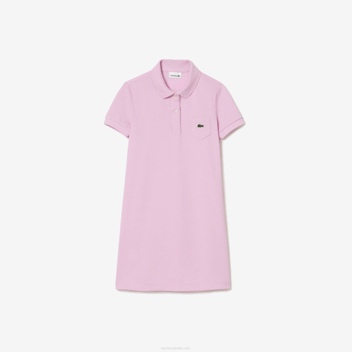 Pure sweetness and Lacoste verve for this flared solid polo dress in ultra-fine mini pique cotton featuring a breast pocket. Coordinate it with a cardigan and sneakers, and your little girl will cruise through the back-to-school season.