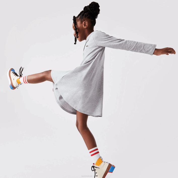 Lacoste Pique Polo Dress 646T3282 Grey Chine CCA Girls