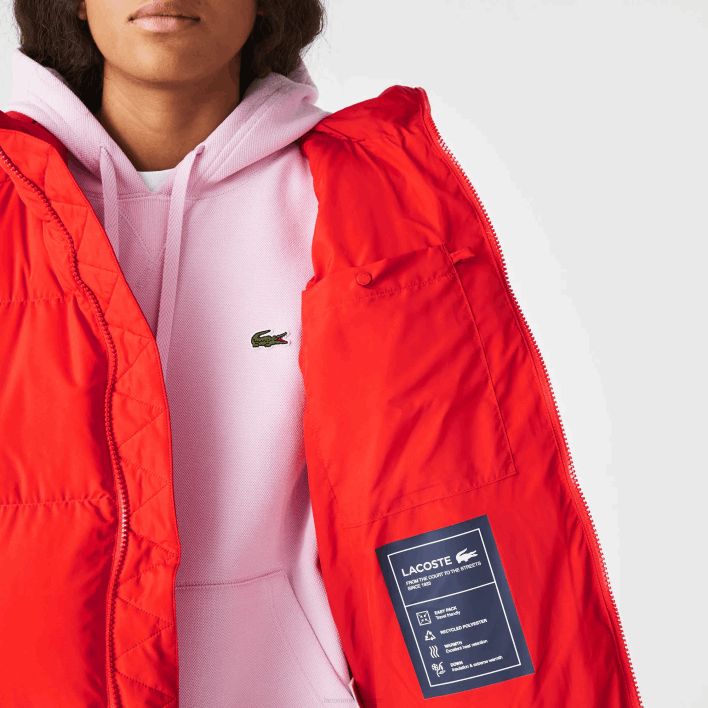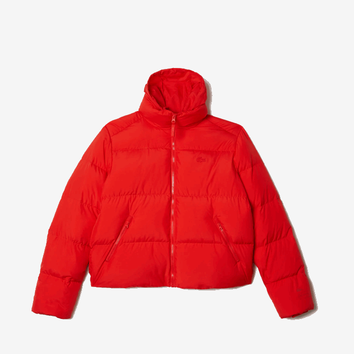 Warm. Easy to fold. Functional. With added Lacoste style. An essential signature down jacket, with impeccable details.