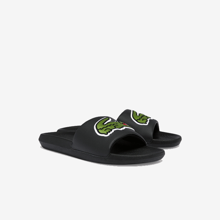Lacoste Croco Synthetic Slides 646T1808 Black & Green 1B4 Men