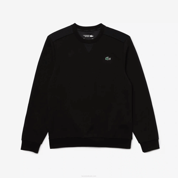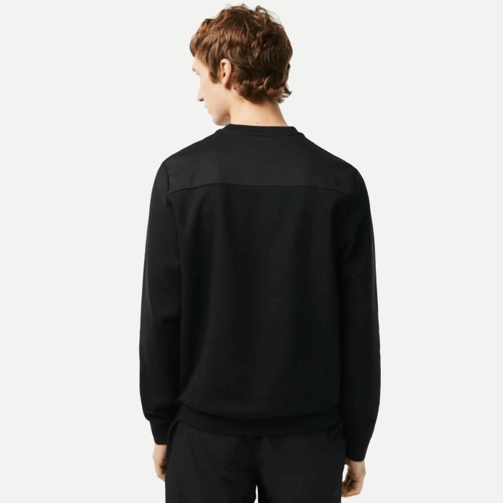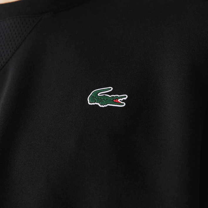 A new ally for sports performance, this crew neck sweatshirt is crafted in stretchy cotton blend interlock. Adorned with breathable mesh panels on the shoulders and back, it features ribbed tone-on-tone finishes and a green crocodile applique on the chest. You can count on the simple elegance of this piece any day.