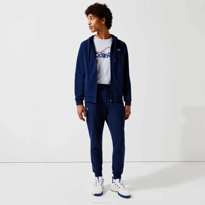 Built for perfect comfort, these tracksuit pants are made of cotton blend interlock. Equipped with an adjustable waistband, slant pockets and ribbed leg bottoms, this athletic piece is distinctive for its oversized mesh panel at the back of the waistband. Complete the look with the matching sweatshirt.