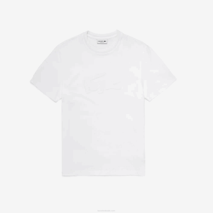 An oversized print crocodile appears on the chest of this signature brand tee for a streamlined, sport-inspired look. Topped with a comfortable crew neck, this piece is crafted in soft cotton jersey, and it features a white silicone crocodile applique at the back of the neck. When the weather is hot, coordinate it with lightweight Bermuda shorts and a zip shoulder bag.